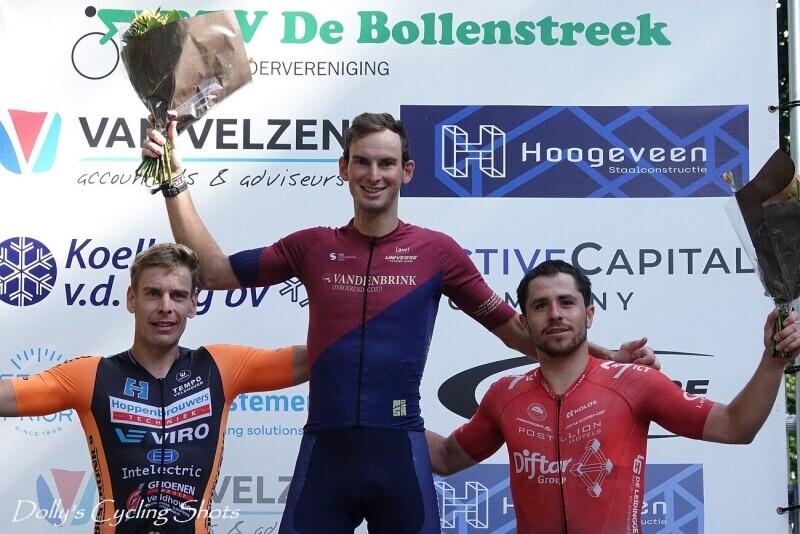In tegenstelling tot de eerste twee koersen was hier het spel wel de hele wedstrijd op de wagen. Na vier ronden kwam er namelijk een kopgroep van zeven renners voorbij en daarachter lag ook het hele peloton in brokken en stukken. Met drie renners was de continentale ploeg Universe Cycling Team goed vertegenwoordigd. Sjors Handgraaf (lid bij de RTV), Luuk Schuurmans en Tom Wijfje hadden het gezelschap van Frits van Gemerden (TWC Tempo), Tim den Braber (Volharding Cycling Team), Niels Reemeijer (Wielerploeg Groot Amsterdam) en Stein Bocxe (WV Avanti). En wat er daarachter ook geprobeerd werd door de verschillende groepen, ze kregen het gat niet dicht. Vooral in de laatste van veertien rondes werd het gat nog rap kleiner, maar RTV-er Sander Huinen kwam als achtste over de meet op een handvol seconden van de eerste groep. Daaruit waren in de laatste paar rondes twee renners ontsnapt. Van Gemerden en Wijfje werkten goed samen en mochten in een sprint á deux beslissen wie de Omloop van de Bollenstreek op zijn naam mocht zetten. Met een verschil van slechts drie honderdste wist Wijfje in extremis zijn wiel als eerste over de meet te drukken. Daarachter legde Den Braber beslag op de derde podium plaats. Beste RTV-er werd Handgraaf op de zevende plaats.