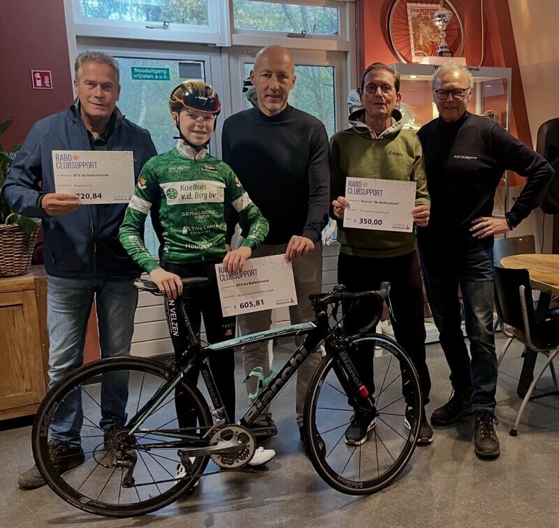 Jeugdlid Stef Verberk mocht voor een te houden baanclinic €605,81 in ontvangst nemen.