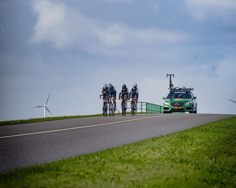 Dit team mocht uit 6 renners bestaan maar door omstandigheden moesten ze met 4 van start en met 4 finishen, dus de lat lag hoog.